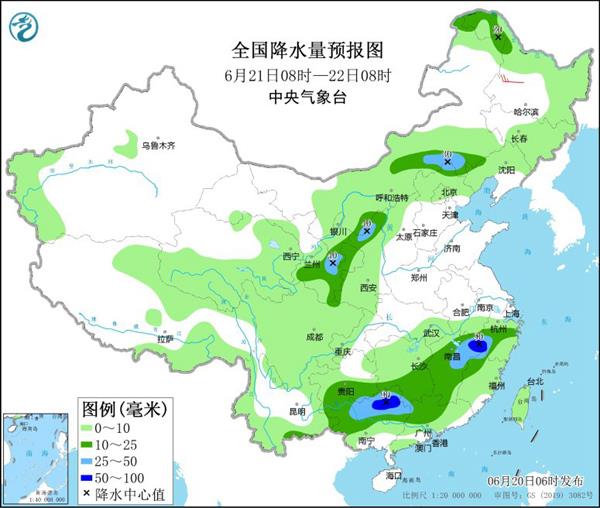 明天,甘肃南部、陕西北部、内蒙古东南部、黑龙江西北部、湖南南部、江西大部、浙江西部、福建西北部、广东中北部、广西中北部、贵州南部等地的部分地区有中到大雨,其中,江西东北部、浙江西南部、广西东北部等地的部分地区有暴雨(50~90毫米)。