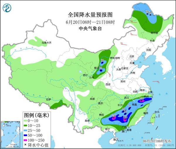 具体来看,今天内蒙古东北部、黑龙江西北部、宁夏北部、江西、湖南南部、浙江南部、华南北部等地部分地区有大到暴雨,其中,江西东北部、浙江西南部、广西东北部、广东西北部等地部分地区有大暴雨(100~180毫米)。