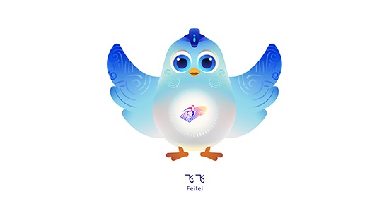 “飞飞”的设计灵感源自良渚文化中“神鸟”的形象,她身上融合了杭州历史人文和科技创新,也承载着人与自然和谐共生的企盼。“神鸟”在中国有着传递佳音的传说,因此,她还是文化和幸福的使者。