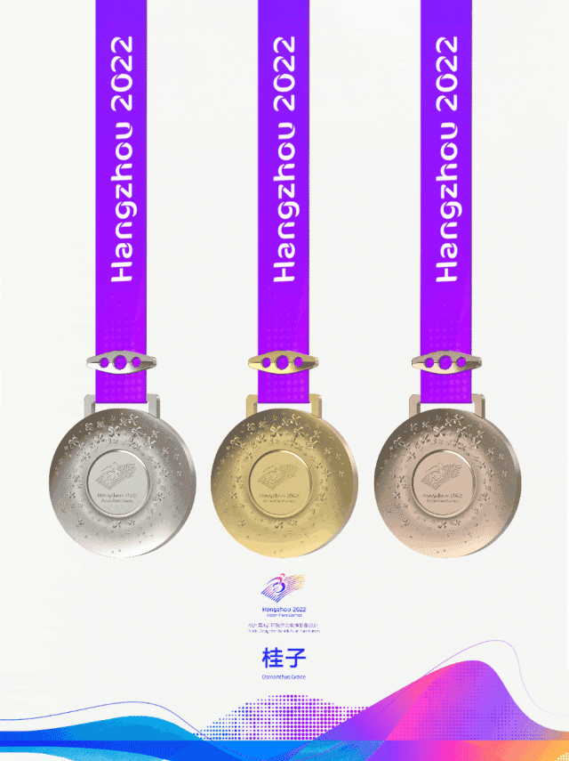 杭州第4届亚残运会奖牌取名为“桂子”,源自描写杭州的名句“山寺月中寻桂子”,寓含江南意境和浪漫色彩。系继会徽“向前”,吉祥物“飞飞”,色彩系统“润泽”,火炬“桂冠”后又一杭州亚残运会视觉形象体系的核心元素,是亚残运文化美学的重要表达。