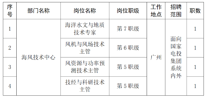 公司4个岗位招聘相应职级人员,详见附表。