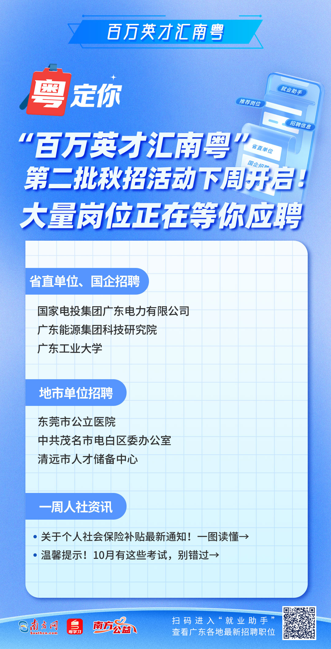 南方网、粤学习客户端本周为你梳理汇总的最新就业资讯来了!