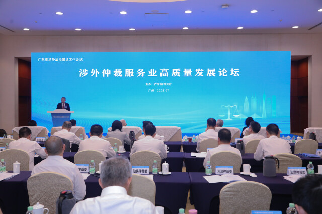 南方网讯(GDToday记者/魏申 摄制/刘超然 通讯员/粤政宣)7月19日下午,广东涉外仲裁服务业高质量发展论坛在广州举办。本次论坛是由广东省委依法治省办举办的“广东省涉外法治建设工作会议”中6个平行专业论坛之一,由广东省司法厅主办。论坛以“打造国际商事仲裁新目的地,服务湾区高质量发展新格局”为主题。省委政法委、省港澳办、省司法厅及各地级以上市党委政法委、司法局有关负责同志出席论坛。省内外专家学者,广东仲裁机构的负责同志,涉外律师、粤港澳大湾区律师代表,省涉外法治人才库、青年人才库入库仲裁员、公证员、专家等嘉宾参加该论坛。
