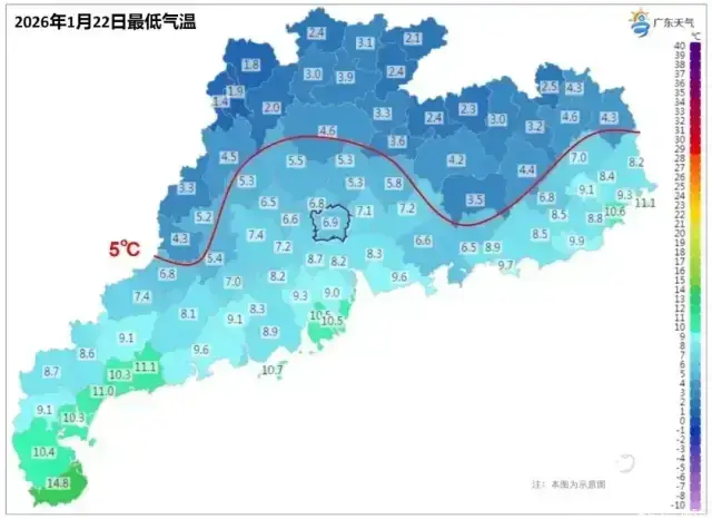 预计22日到23日早晨,粤北市县仍有大范围5℃以下的低温天气,高海拔山区-4~0℃,有冰(霜)冻,局部有冻雨或雨夹雪;23日白天到24日,广东大部多云到晴天,气温逐渐回升,但早晚依旧寒冷,仍需注意保暖。25日,大部市县转阴天,有小雨。另外,未来几天广东早晚有轻雾或雾,出行需注意交通安全。