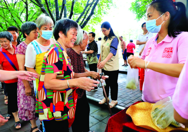 6月17日,惠州市博罗县新时代文明实践志愿服务总队、博罗县博仁文化志愿者协会联合开展“我们的节日·精神的家园——端午佳节飘粽香 志愿服务传真情”活动,为群众免费派发粽子,既传承优秀传统文化,又弘扬中华美德,传递志愿服务温情。