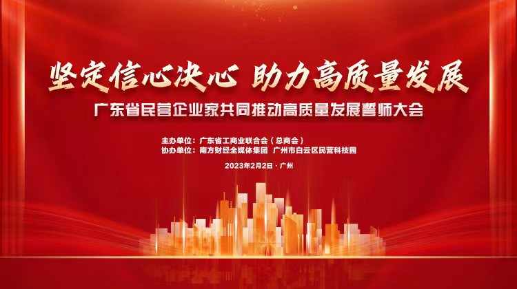 为第一时间响应省委省政府关于高质量发展的号召,动员全省广大民营企业坚定信心决心,快速投入高质量发展,省工商联于2023年2月2日召开广东省民营企业家共同推动高质量发展誓师大会。