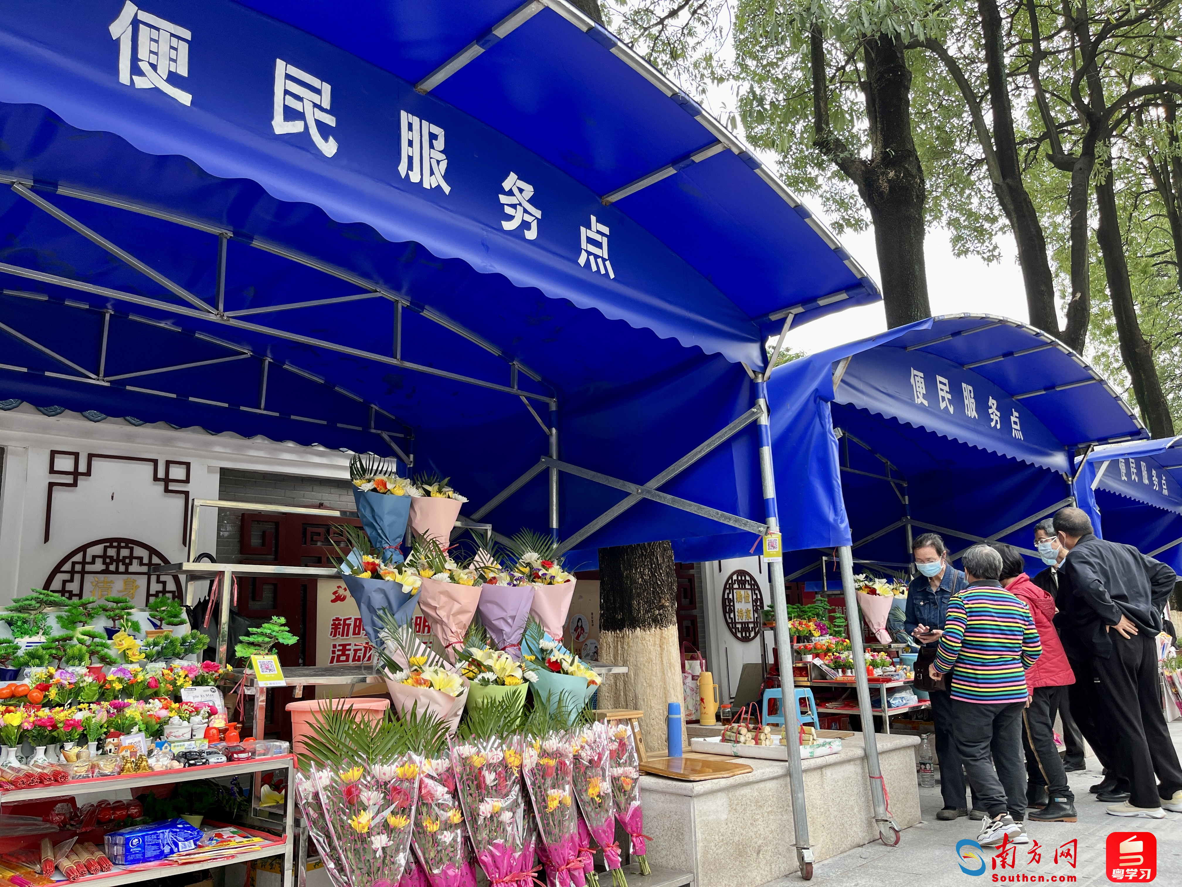清明期间,广州各祭扫场所均提供现场预约通道、便民服务点。银河革命公墓在西门口设立“红棉驿站”、鲜花档和柠檬茶休闲便民服务区,提供鲜花、茶水、医疗点等便民服务,配备了轮椅、一次性雨具等便民用品。福山公墓园区增设便民服务车,专门为带幼儿出行群众、70岁以上老人或行走不便人员提供服务。铭恩园、新塘公墓均设有无烟拜祭区,设置自动售卖鲜花设备,满足群众拜祭用花需求。
