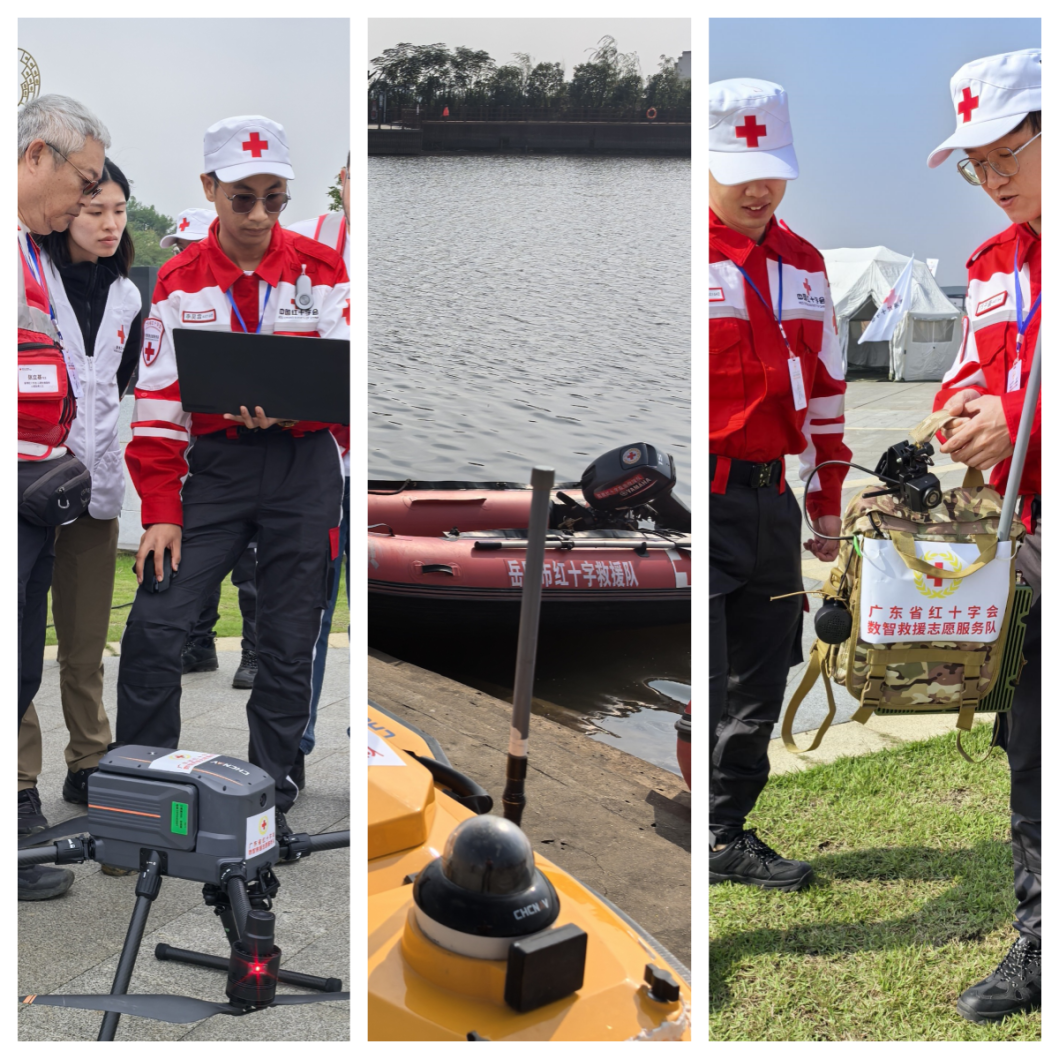 联合演练过程中,广东省红十字会派出的红十字数智救援志愿服务队成为本次演练的突出亮点。6名队员精准配合,团结协作,运用无人机生成三维地形模型,架设便携式卫星基站恢复通讯,操作无人侦测船开展水下搜索,以高科技手段提升救援效率,为指挥部提供精准、详细、立体、全方位的三维灾情模块,便于决策层指导各救援队开展救援工作。