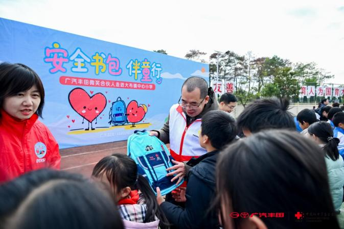 11月19日,韶关市乳源瑶族自治县大布镇中心小学内暖意涌动、笑语盈盈。在广东省红十字会的积极协调下,由中国红十字基金会联合广汽丰田微笑合伙人发起的“安全书包伴童行”公益捐赠活动在此圆满举行,为全校550名学生送上兼具安全防护与环保理念的“安全书包”,用实际行动筑牢乡村儿童成长“防护网”。广汽丰田、乳源县红十字会、当地政府、学校等单位相关人员参加活动。