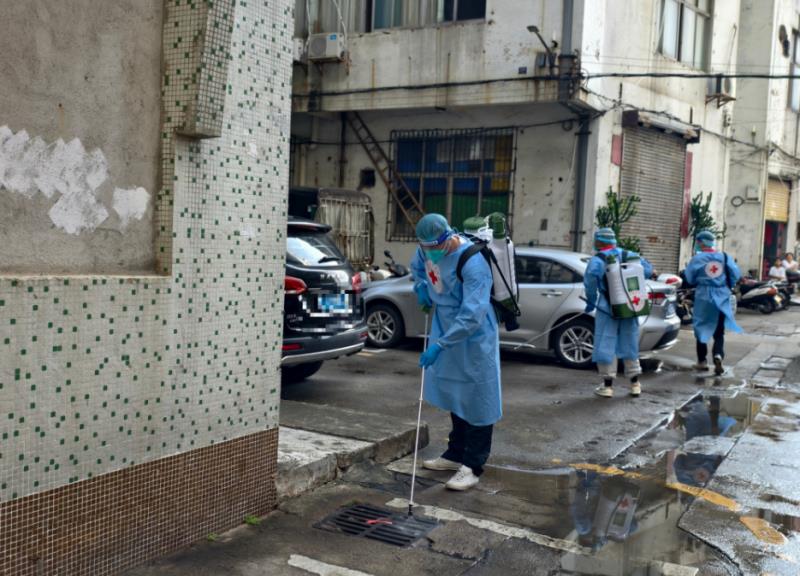 从入户排查到烈日下的社区消杀,从物资募捐的爱心接力到卫生知识的宣讲,江门市红十字系统以“人道、博爱、奉献”为底色,凝聚起政企社多方力量。连日来,江门市红十字系统共同发力,广大红十字志愿者身体力行持续开展“两清一灭”。