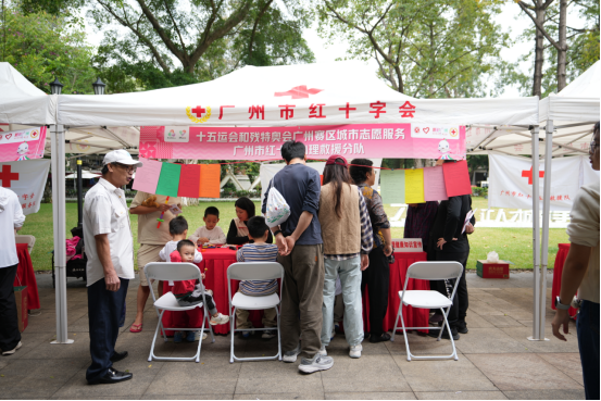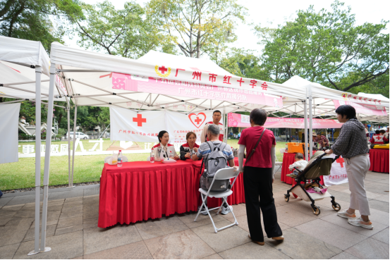 当天上午,沙面公园会场率先启动,应急救护培训众安队等8支红十字志愿服务队伍迅速完成场地布置,10个特色摊位有序铺开,吸引了周边居民及游客驻足参与;下午,广州市儿童公园会场接力开锣,针对亲子群体设计的互动体验项目,让急救知识学习变得生动有趣,更让志愿精神在亲子间传递。