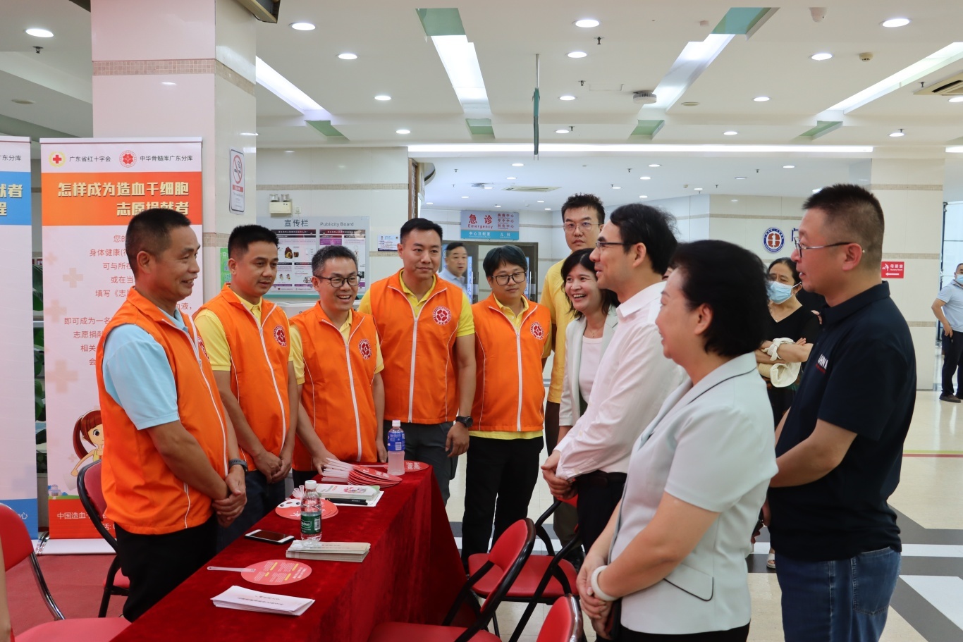 9月20日,广东省第9家中国造血干细胞捐献者资料库定点采集医院及红十字生命健康教育中心揭牌仪式暨第11个“世界骨髓捐献者日”主题宣传活动在广州市第一人民医院南沙医院举行。省红十字会党组书记、常务副会长林彬,广州市副市长赖志鸿,省红十字会党组成员、副会长兼秘书长王海华,广州市卫生健康委党组成员、副主任李铁钢,广州市红十字会党组书记、常务副会长张青蕾,省红十字会捐献管理中心主任吴梦晴,广州市南沙区副区长马洁红,广州市南沙区卫生健康局局长刘韬,广州市第一人民医院党委书记付涌水,广州市第一人民医院南沙医院院长戴奇山等出席揭牌仪式。