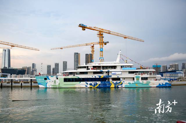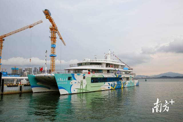 据介绍,大湾区二号为钢铝混合结构双体旅游客船,全长71.95米,宽18.72米,载客350人,营运航速14节。轮船坚持节能低碳、绿色环保的理念,采用锂电池与柴油机发电混合电力推进系统,电池推进状态下达到“零排放、零污染、超低噪音”标准,船上的重要设备均为中国制造,并运用大量玻璃结构,为乘客展现广阔的全景视野。
