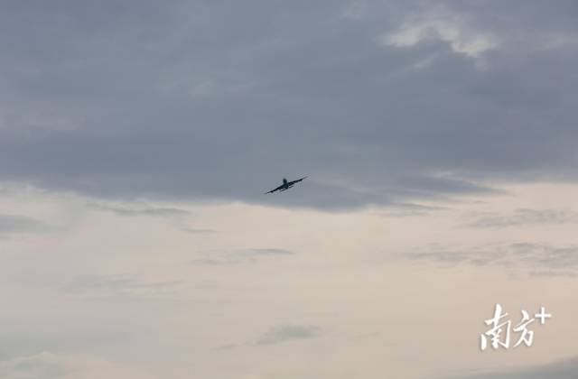 经港珠澳大桥上空转向香港机场的国际航班客机。