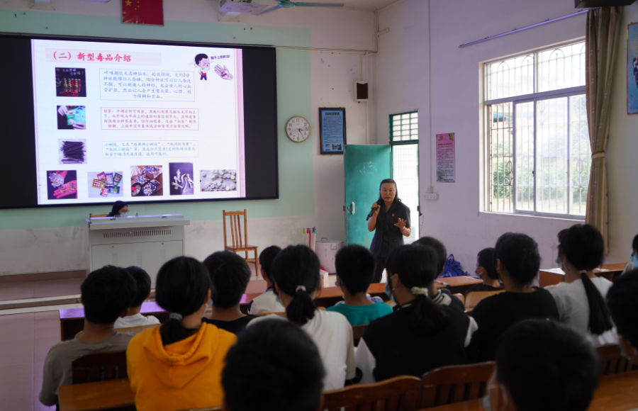 2018年以来,禁毒普法工作组坚持禁毒宣传“走出去”,庭审教育“请进来”,组织各类禁毒宣传教育活动180余次,直接受教育学生1000多人,学生家长及村社区群众2000多人。2022年12月2日,胡燃获聘成为清新区第三中学法制副校长,并现场为该校一百多名学生开展禁毒知识普法讲座。围绕禁毒和预防未成年人犯罪等主题,她以多个发生在学生身边的事件为例,结合《远离毒品,为青春护航》普法教育读本,用一个个接地气的普法小故事,有效为学生们的健康成长构筑安全屏障,受到该校师生的广泛好评。