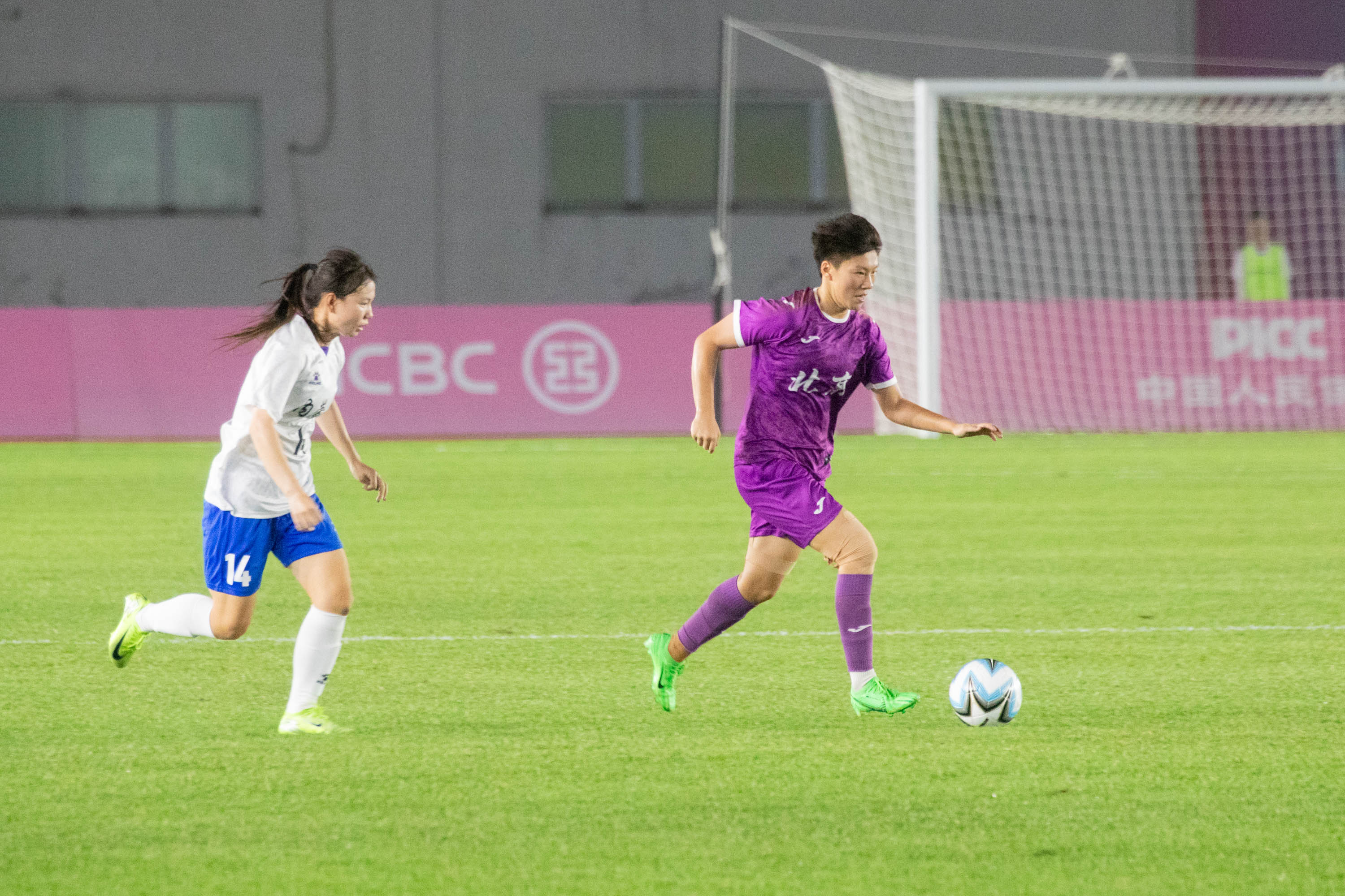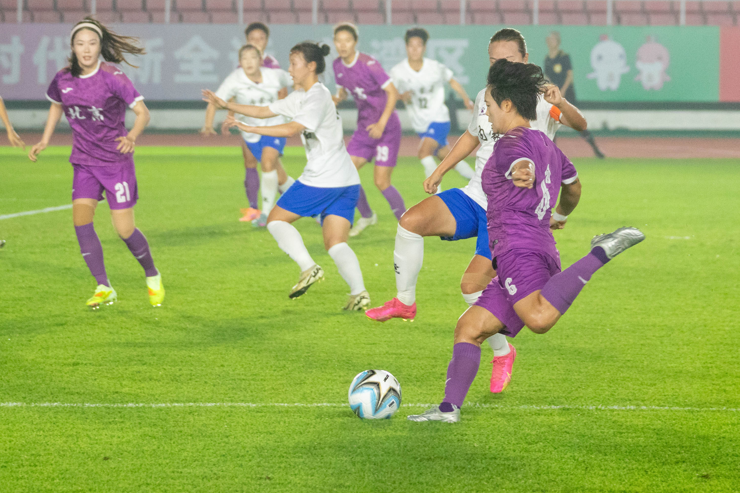 这粒早早到来的进球瞬间点燃了现场气氛。 领先后的北京队并未保守,继续通过流畅的传控掌握比赛节奏。第42分钟,北京队在中路打出精妙的短传渗透配合,撕开了内蒙古队的防线,9号黄新灵在门前接到队友传球后,冷静地选择一记轻巧挑射,将场上比分扩大为2:0。