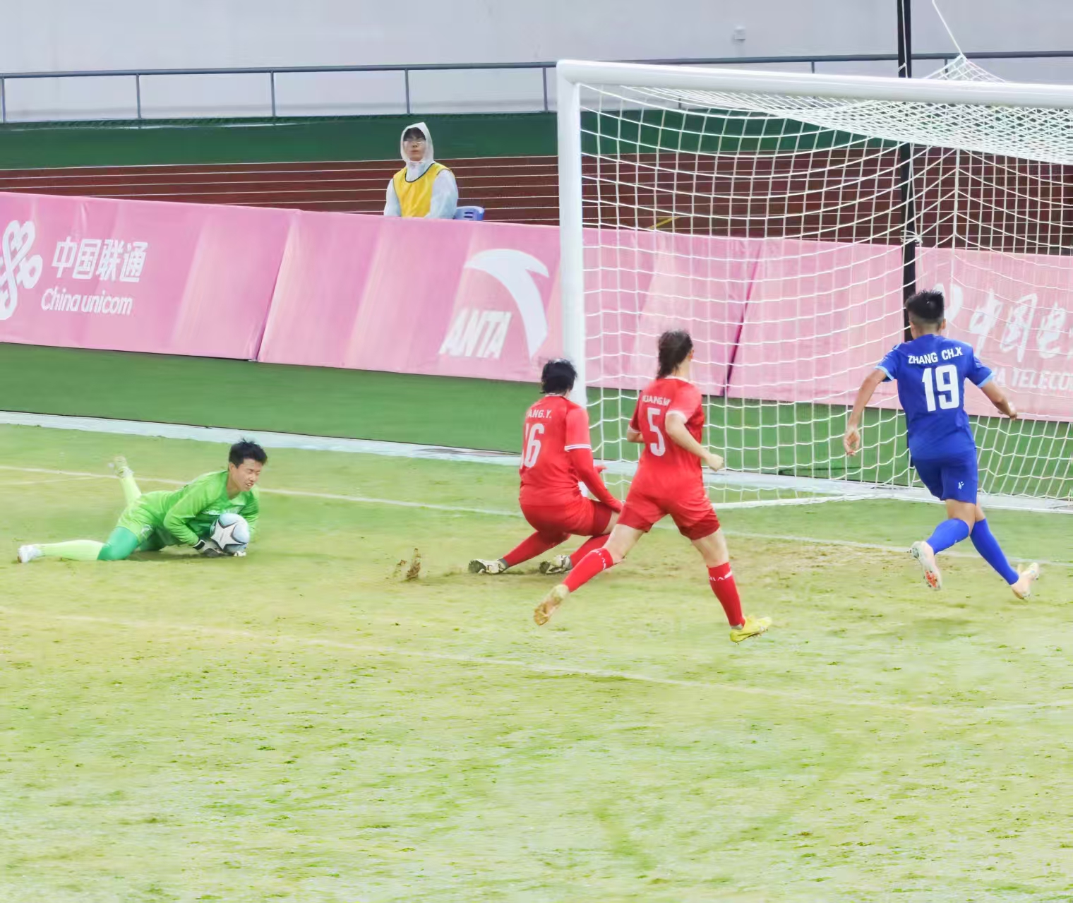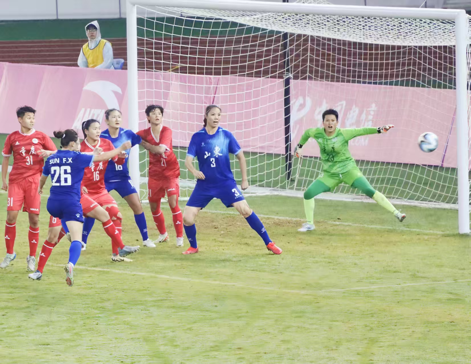上半场开赛仅2分钟,山东队女将们先拔头筹,以1:0领先对手。比赛来到第40分钟,山东队迎来第二次破门机会,队员凭借绝妙的进攻配合,将比分扩大至2:0领先。