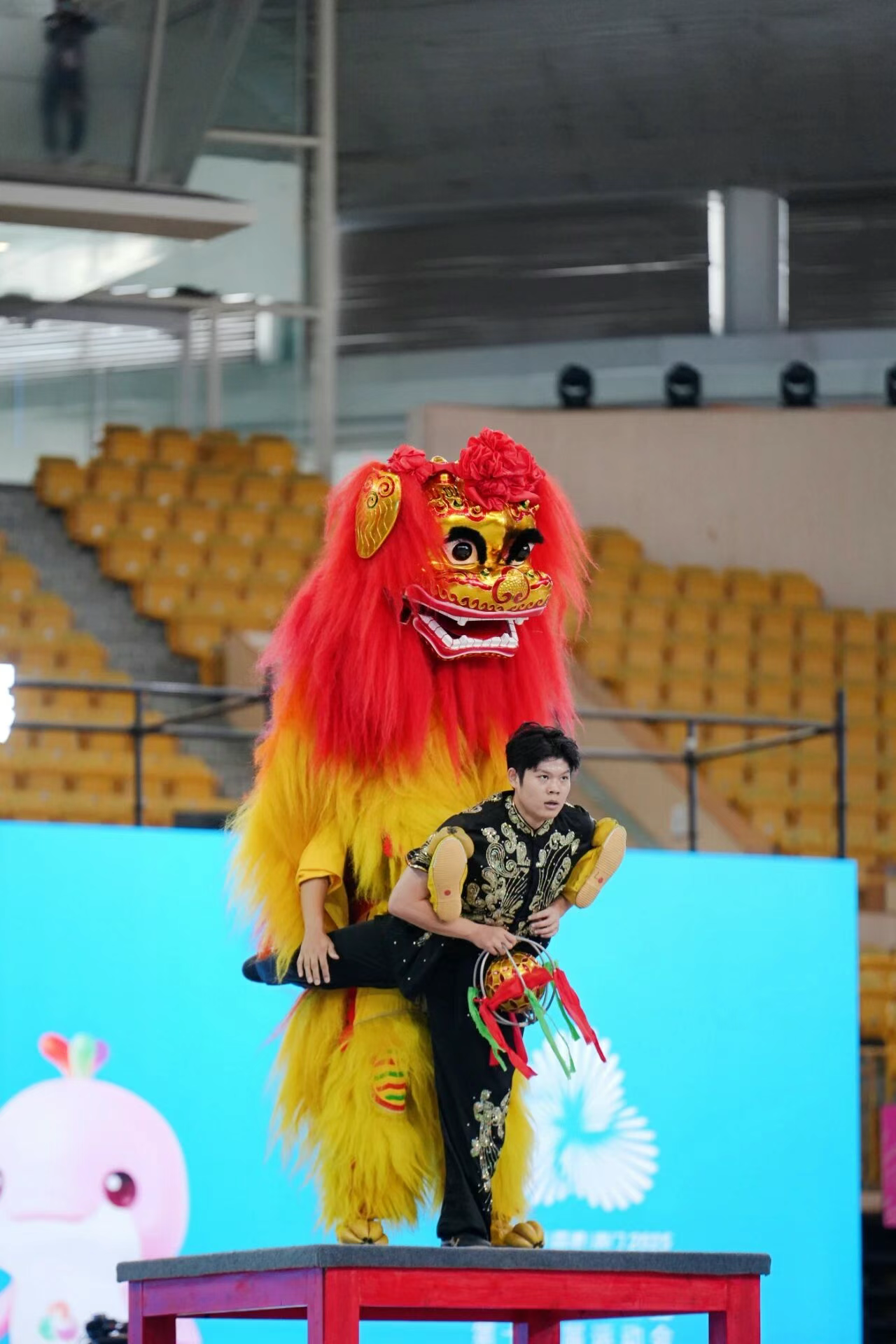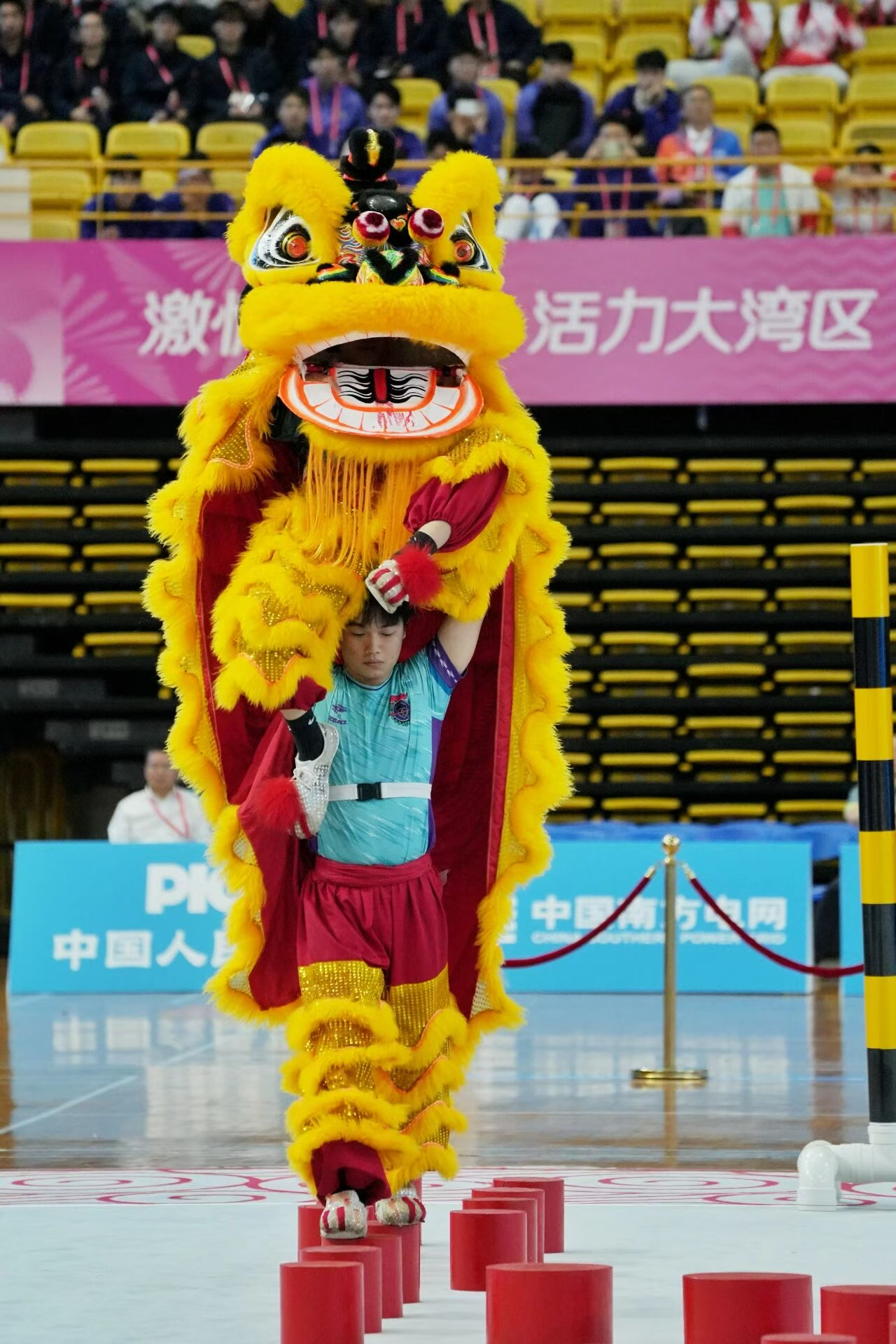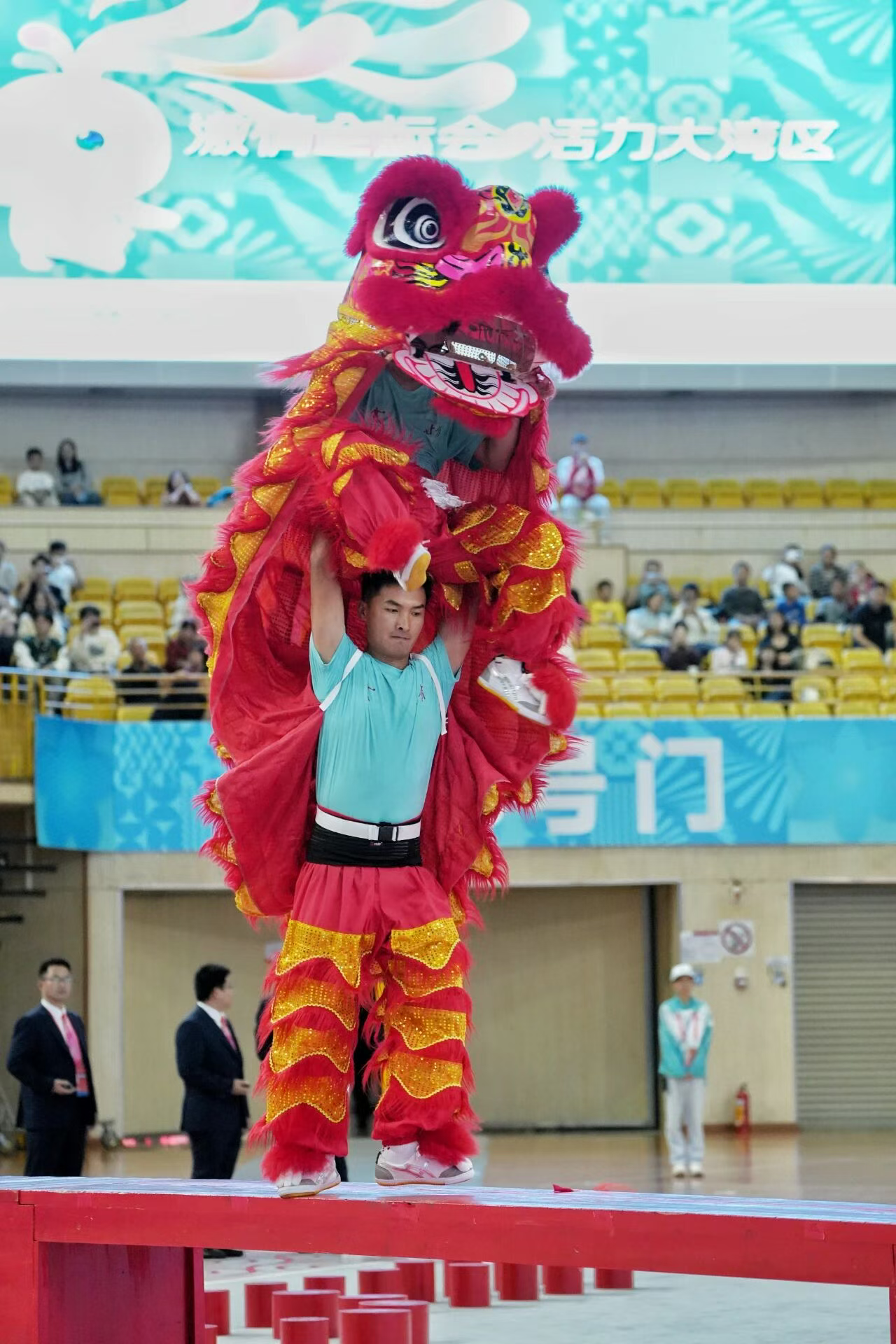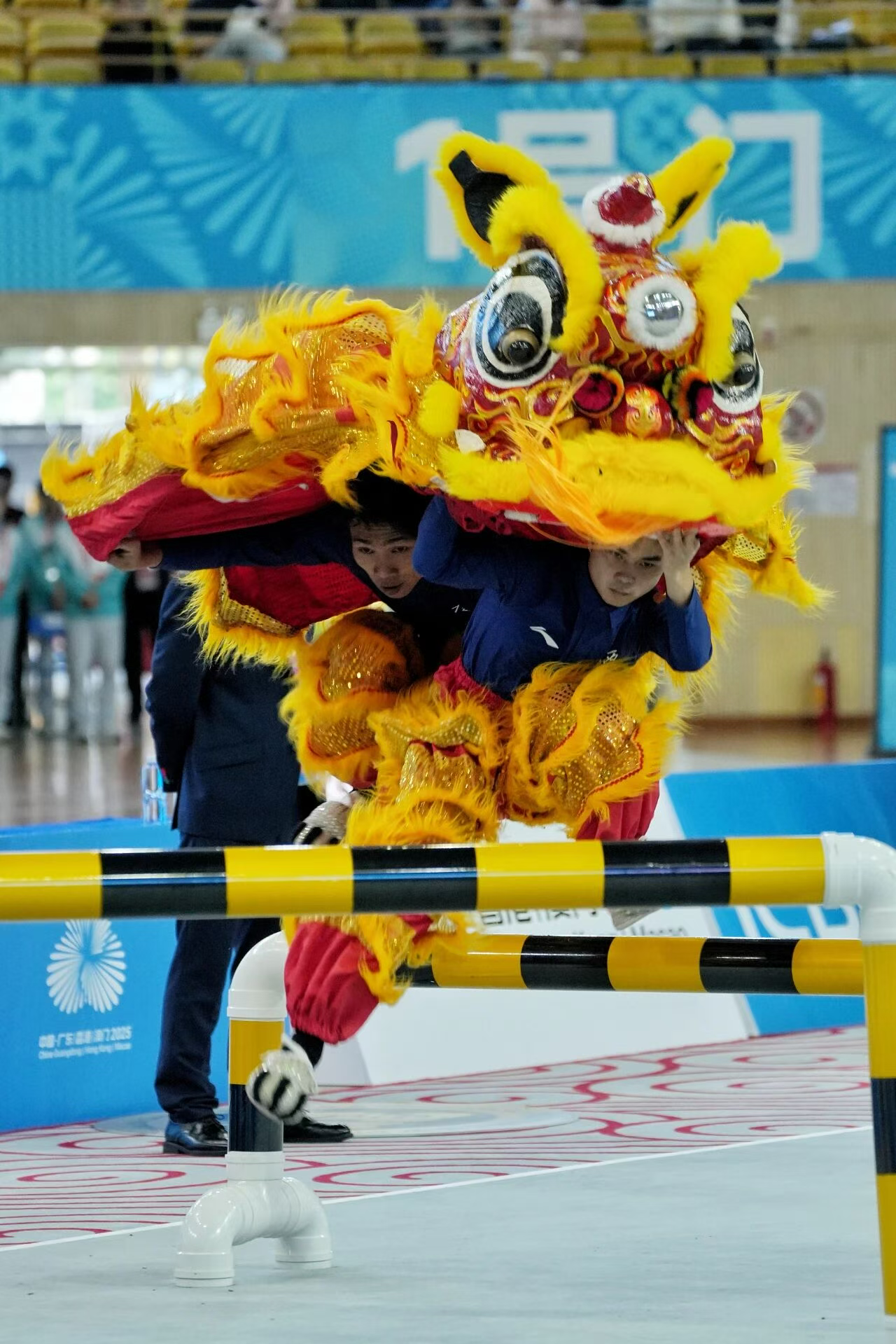 南狮障碍:广东队用时25.75秒,获一等奖。