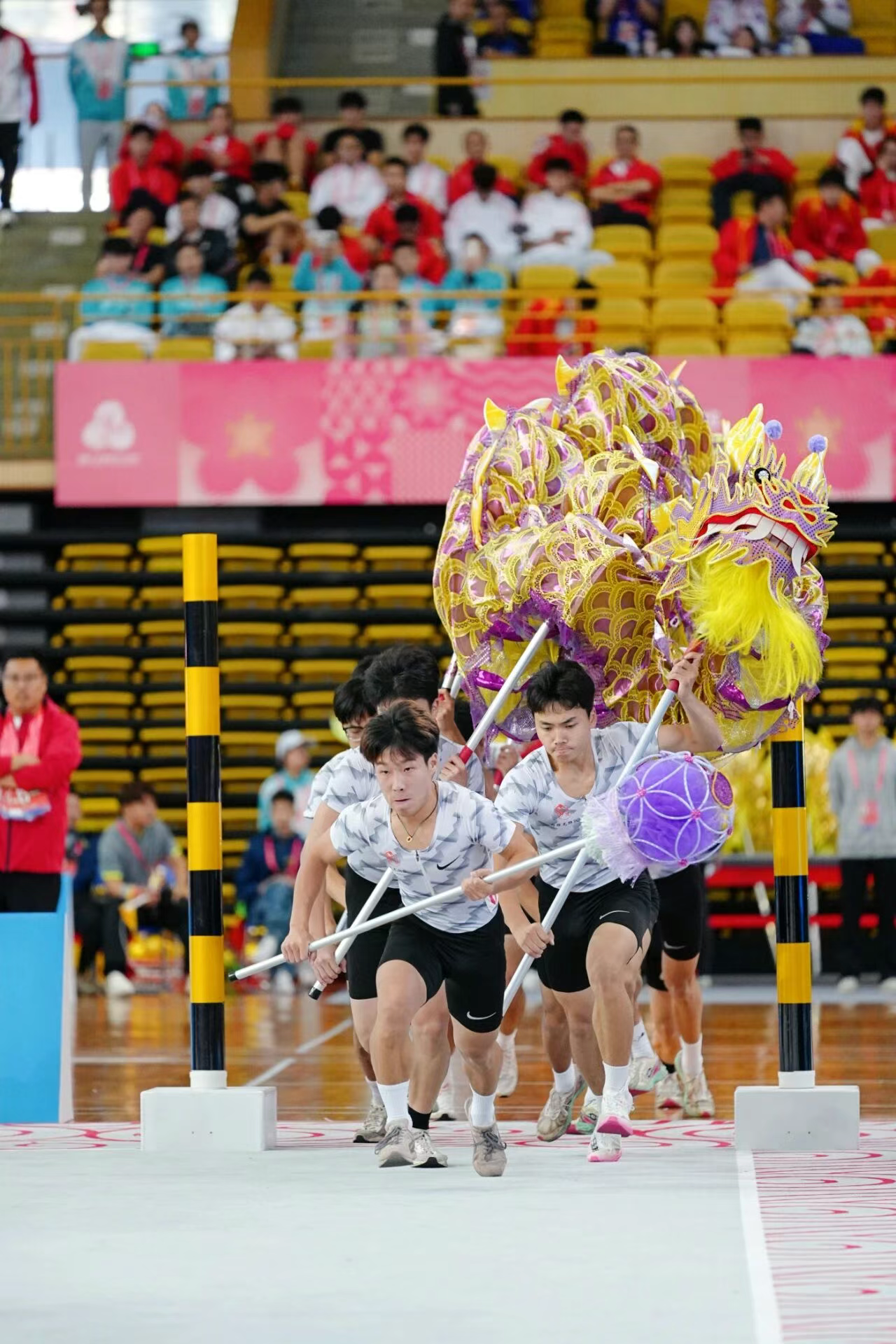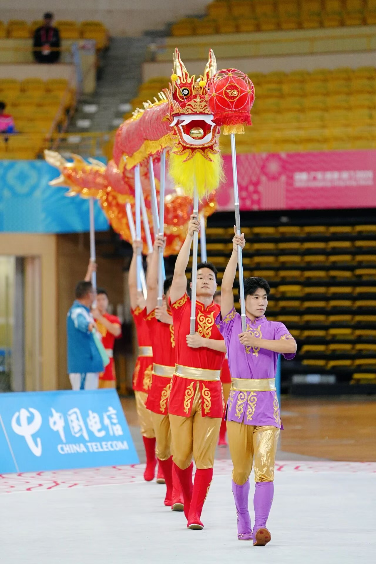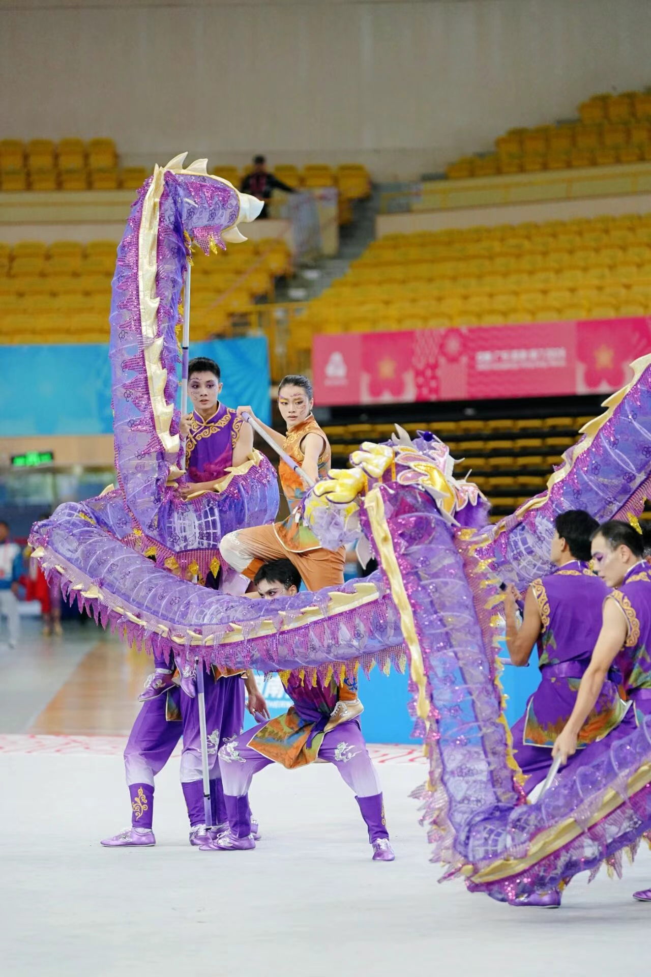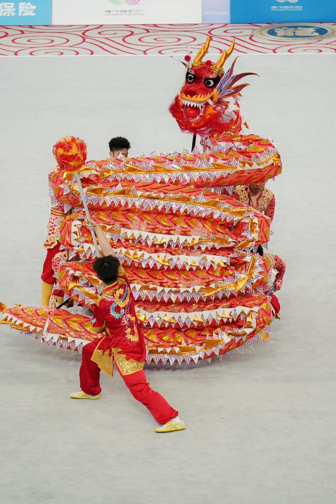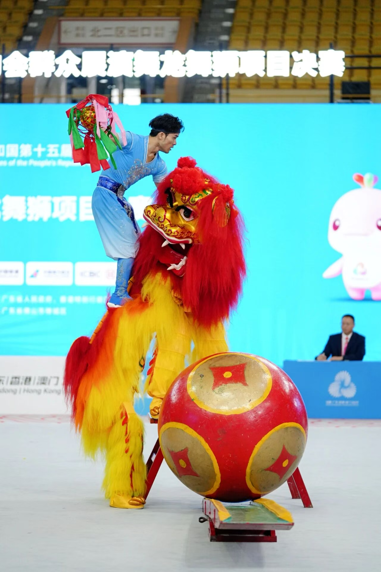 11月12日,第十五届全国运动会群众展演舞龙舞狮项目决赛继续进行,赛事密集,各代表队在舞龙障碍、北狮自选、南狮障碍、舞龙规定等四个单元激烈角逐,为观众呈现一场龙狮盛宴。