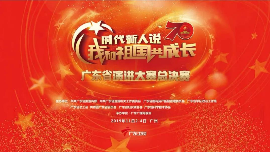 11月2日—4日,广东省“时代新人说——我和祖国共成长”演讲大赛总决赛,在广东广播电视台1600平方米演播厅成功举行,此次大赛共有12名“时代新人”脱颖而出。