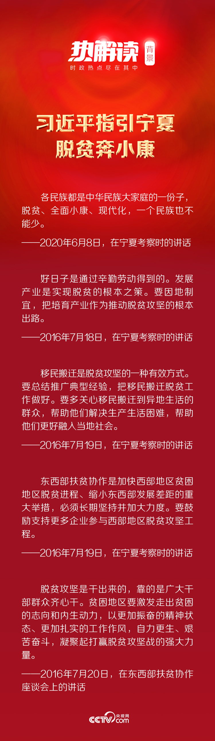 2016年考察宁夏时,习近平总书记曾说:“到2020年全面建成小康社会,任何一个地区、任何一个民族都不能落下。”在决胜全面建成小康社会、决战脱贫攻坚之年,习近平步履不停、夙夜兴寐,坚定践行着对人民的郑重承诺。