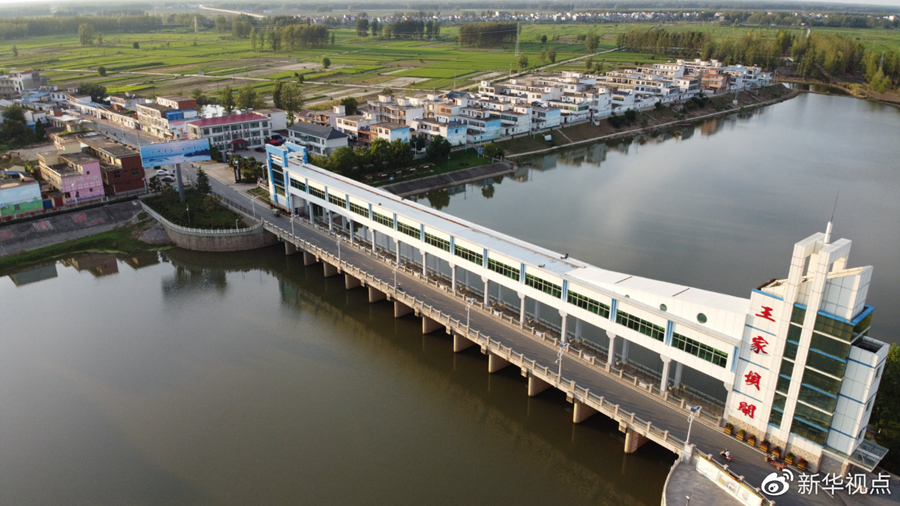 这是2020年8月15日拍摄的位于安徽省阜南县的王家坝闸(无人机照片)。新华社记者 张端 摄
